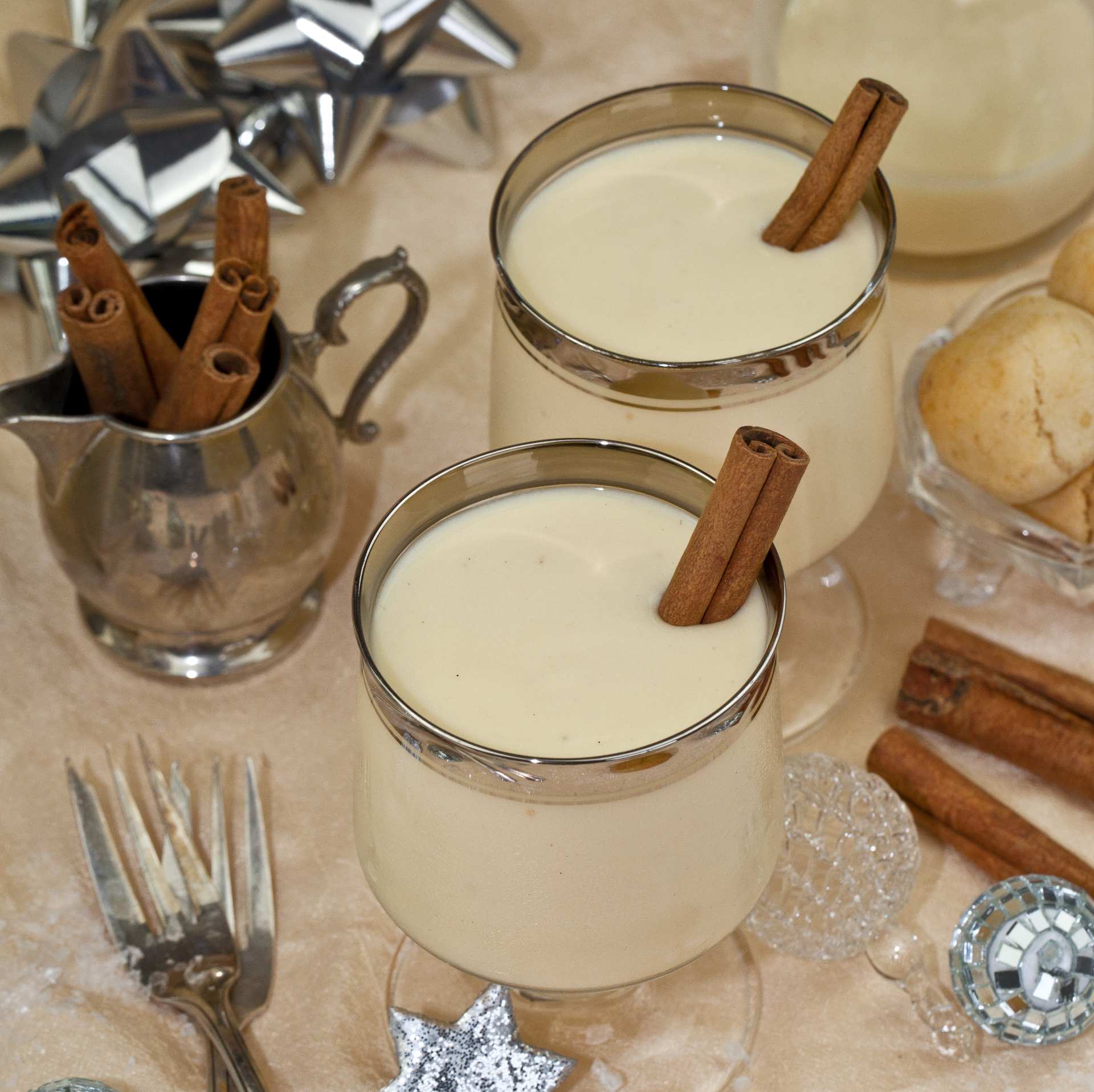 Zimtstange entfernen. Eierpunsch in Gläser füllen. Auf Wunsch kann zur Dekoration der Eierlikörpunsch mit einer Zimtstange serviert werden.